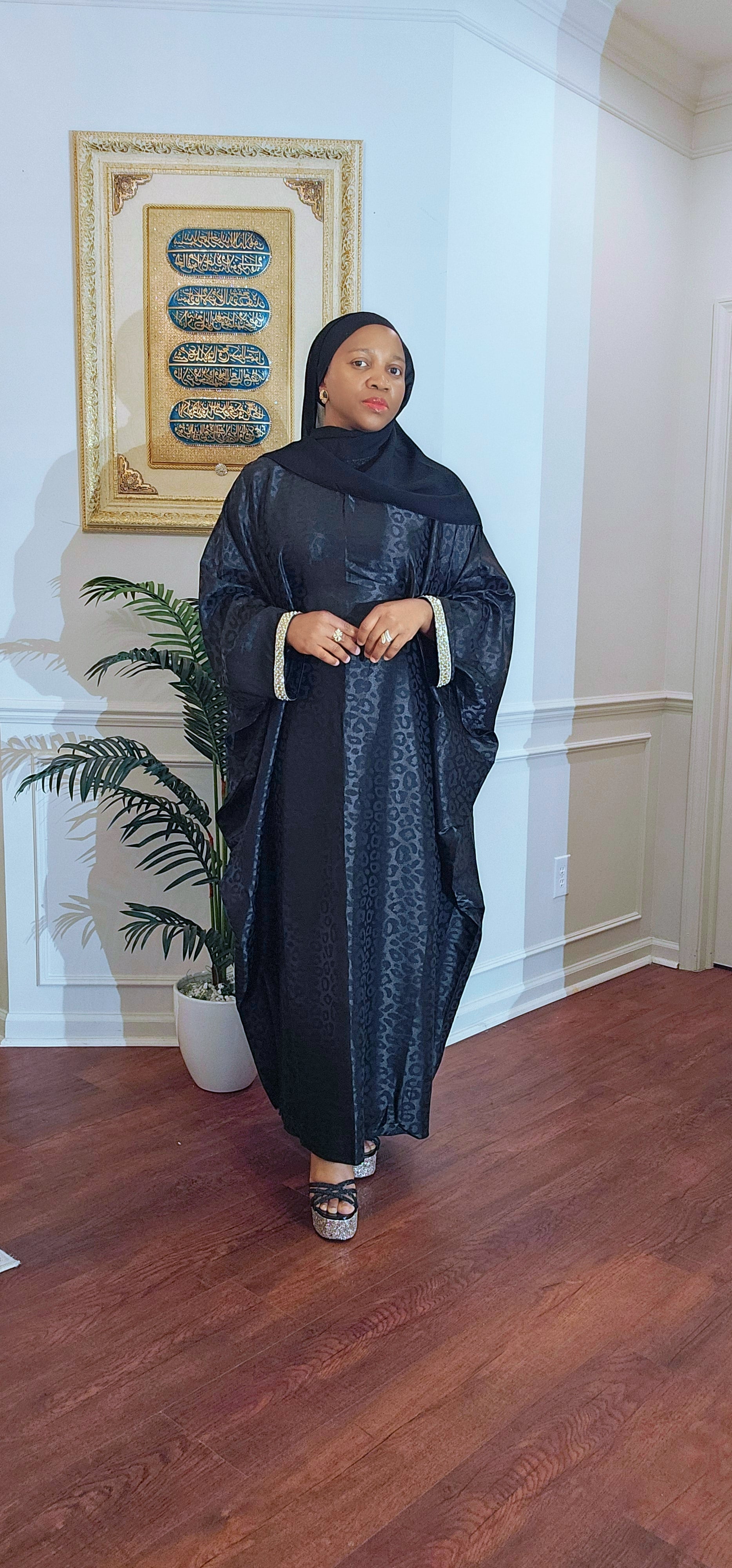 This kaftan comes with a hijab and also has a belt inside, so you can wear it fitted or loose.